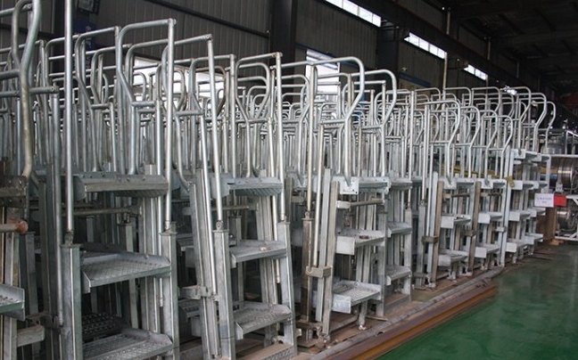 活动梯一般是一种可伸缩、可调节高度的梯子结构,安装在鹤管的相应位置。工作人员可以通过活动梯迅速、安全地上下鹤管,以便进行维修、清洗、安装或其他操作。这样的设计可以提高工作效率,同时也有助于确保工作人员的安全。